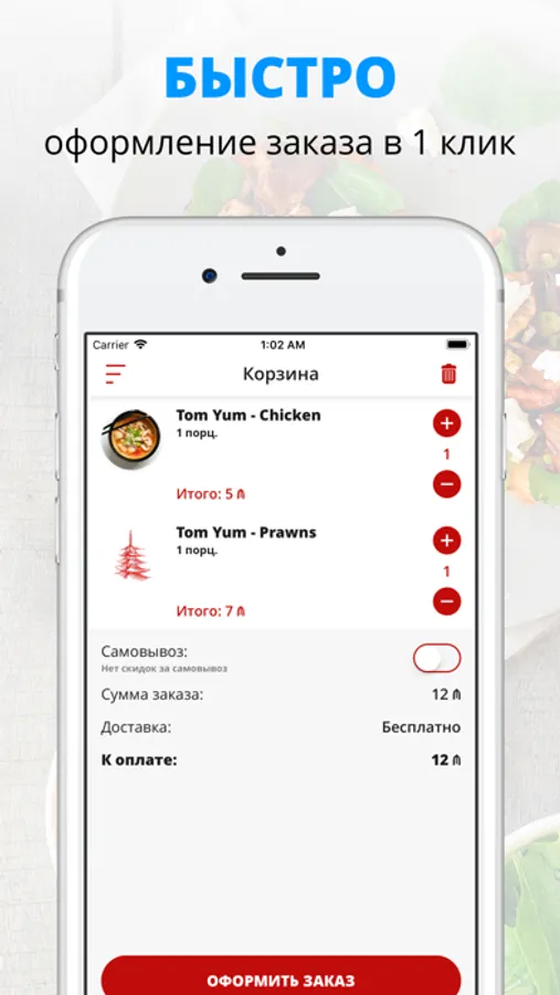 - Отслеживайте статус и время заказа!
