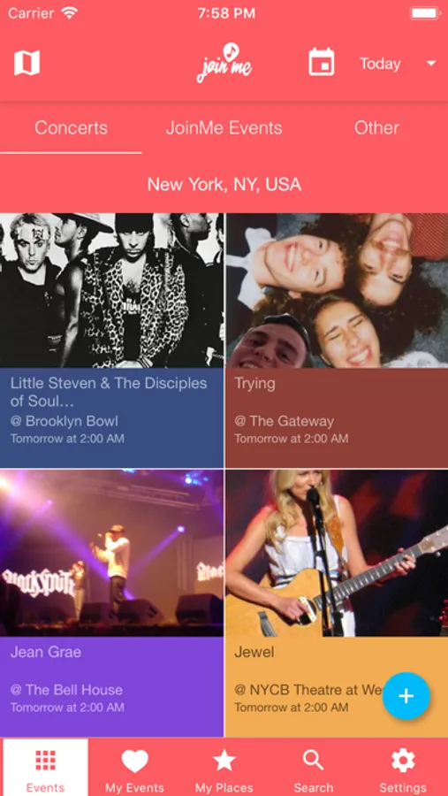 JoinMe is the new and unique way to discover new events and concerts around the world. The app will try and match your music profile to events near you or location you have chosen and will suggest events in clubs or places visited by like-minded people.