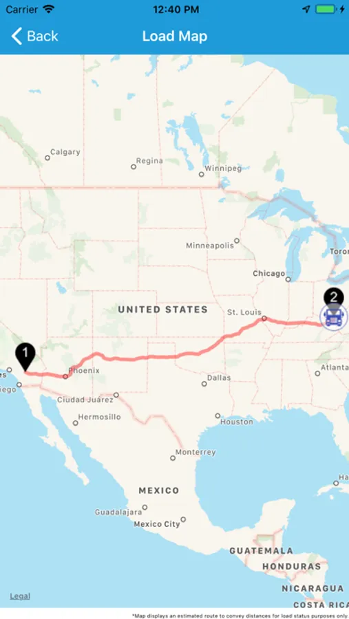 2. Indicate which part of the route you are on as you move between pickup and delivery