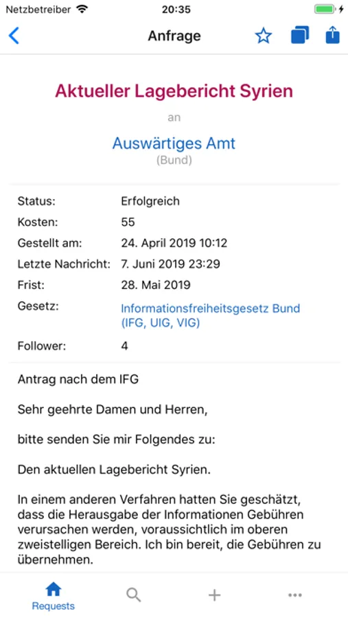 FragDenStaat möchte Sie dabei unterstützen, auf amtliche Informationen von deutschen Behörden zuzugreifen. Hierfür veröffentlicht FragDenStaat Anfragen nach den Informationsgesetzen des Bundes und der Bundesländer gemeinsam mit den Antworten der Behörden.
