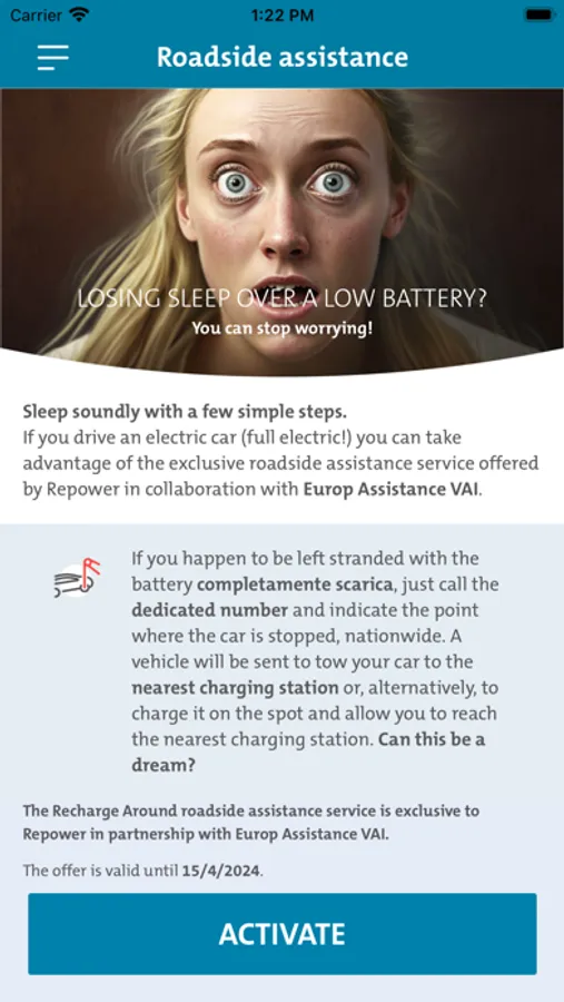 The Recharge Around roadside assistance service is exclusive to Repower in partnership with Europ Assistance VAI.