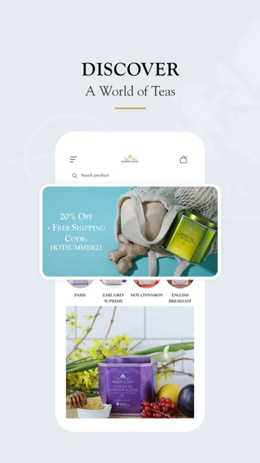 Enjoy quick, convenient access to over 300 varieties of the world’s finest teas with the Harney & Sons Fine Teas app! Shop from your mobile device and enjoy free shipping on every order of your favorite teas, created by master blenders.