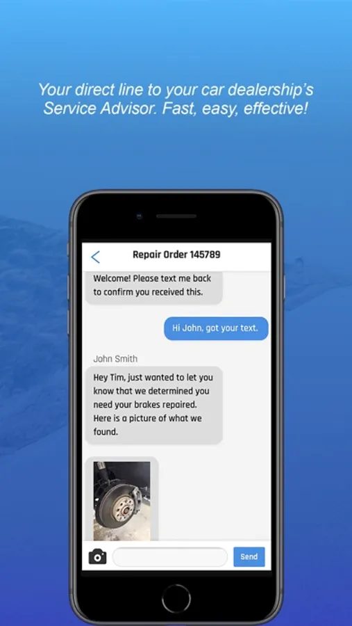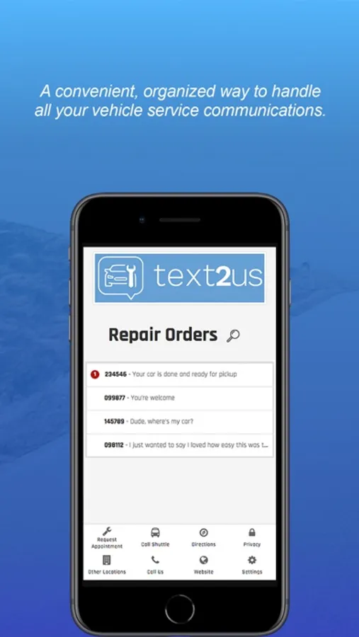 Download and use the Text2Us app on your smartphone. Never miss important information from your Service Advisor. Ask your Service Advisor questions or give authorization for your repair.