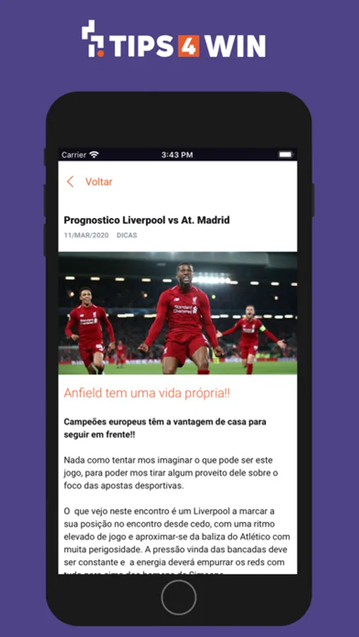 Faz o download da app TIPS4WIN e obtém prognósticos de confiança para apostas de futebol, de forma gratuita.