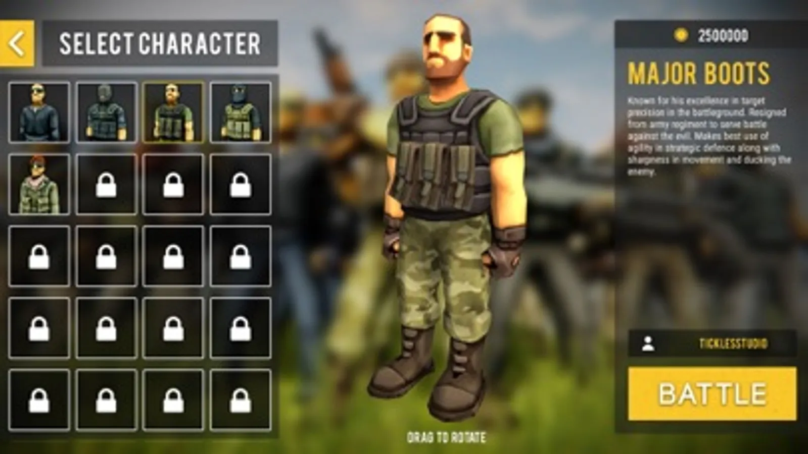 This game of vast survival brings about a lone survivor war zone on the front. You either die or you kill! Bring out the dexterity and true grit of survivors of ww2 on the forefront and win this player unknown pubg in the survival battle grounds. If you use your insightful wits and survivor battle tactics, you can defeat the enemy clan and get 120 unarmed and dead in the battle arena. Enjoy ragdoll physics and amazing graphics of the 3D open world environment. Use different sorts of heavy equipment in the PvP battlegrounds, load your shotgun bazooka and aim with precision at the rival tabs in one of the best war games 2018. Be the sniper shooter known for his aggression and nimbleness. Choose amongst five incisive war heroes to play the multiplayer game of survival rules PvP.