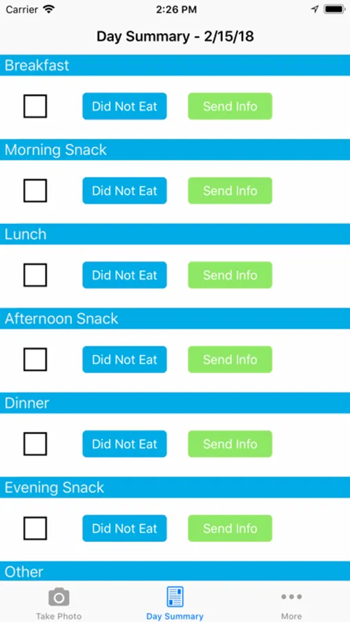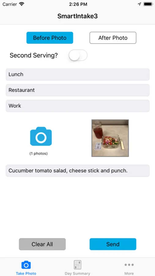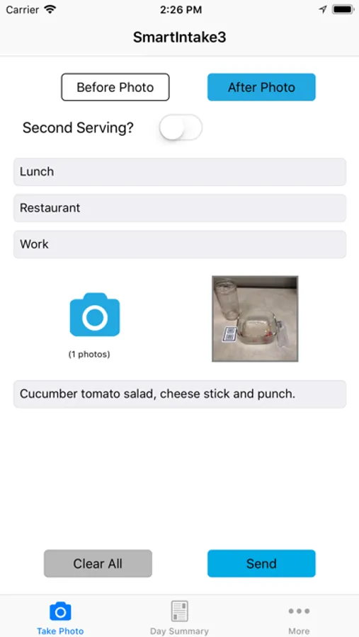 With SmartIntake3, users have the option to choose second helpings as a meal type. The app also includes a handy Daily Summary to review your day's overall meals, with the ability to indicate meals skipped.
