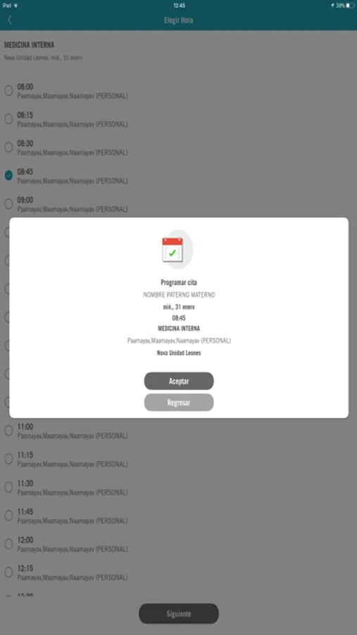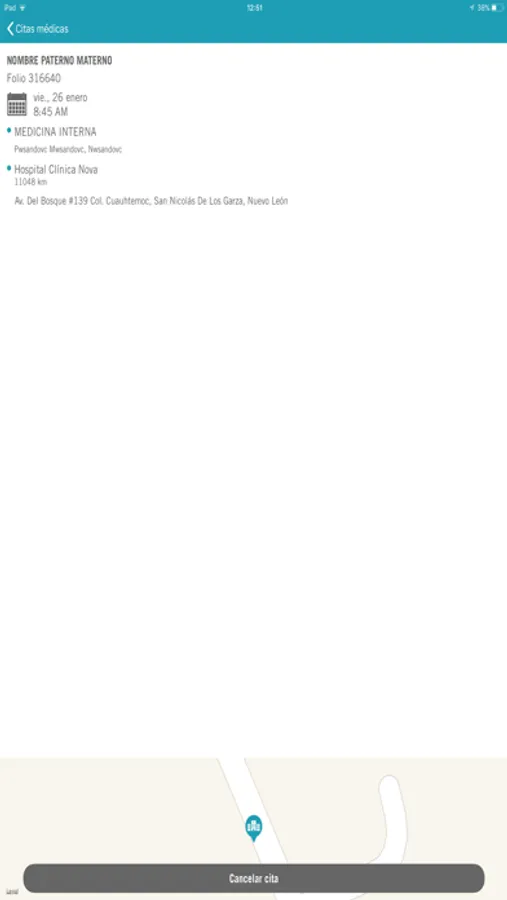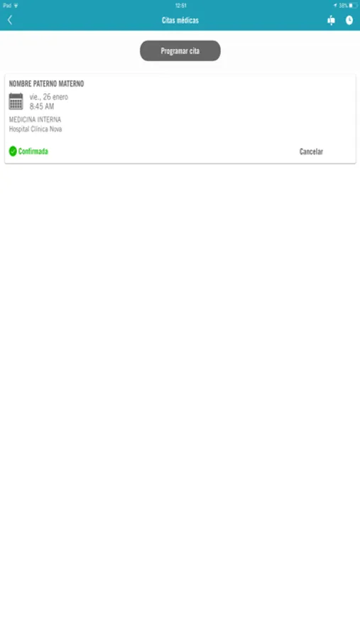 - Citas médicas: Permite al usuario programar, confirmar y cancelar citas.