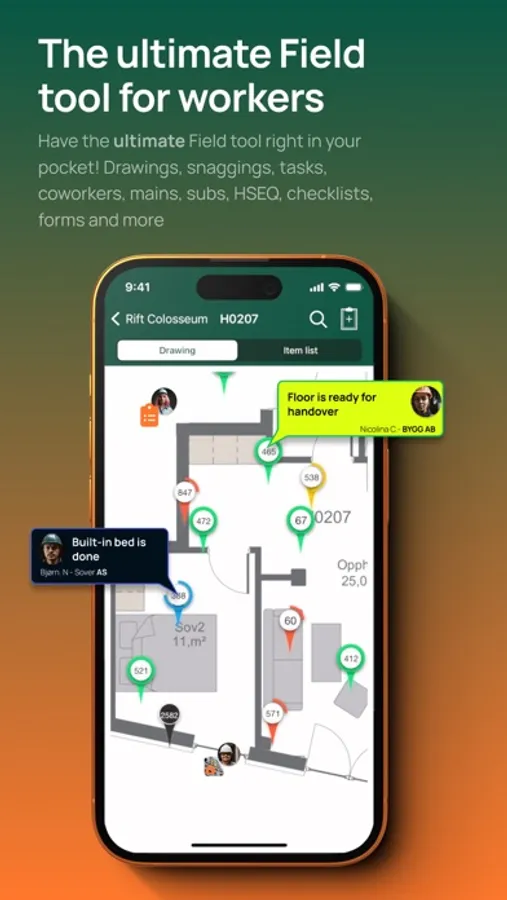 NEXT FIELD is more than just a field tool; it is a complete platform that streamlines and simplifies collaboration on the construction site. With our app, you get seamless task management that will take your project to new heights.
