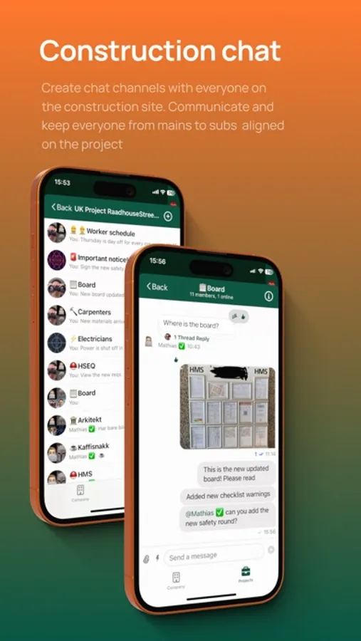 To ensure seamless communication on the construction site, we have also included the Building Chat feature. Create chat channels with all involved parties, from main contractors to subcontractors. Keep the communication flowing and synchronize all aspects of the project in a simple and efficient manner.