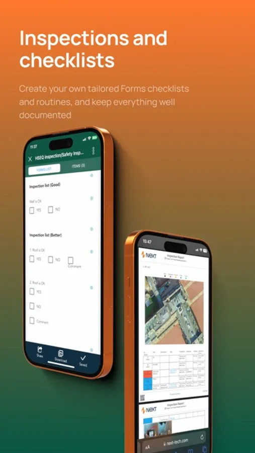 Perform inspections and checklists easily and efficiently with NEXT FIELD. Create customized forms, checklists, and procedures, and keep all documentation well-organized and accessible. We understand the importance of having control over the details.