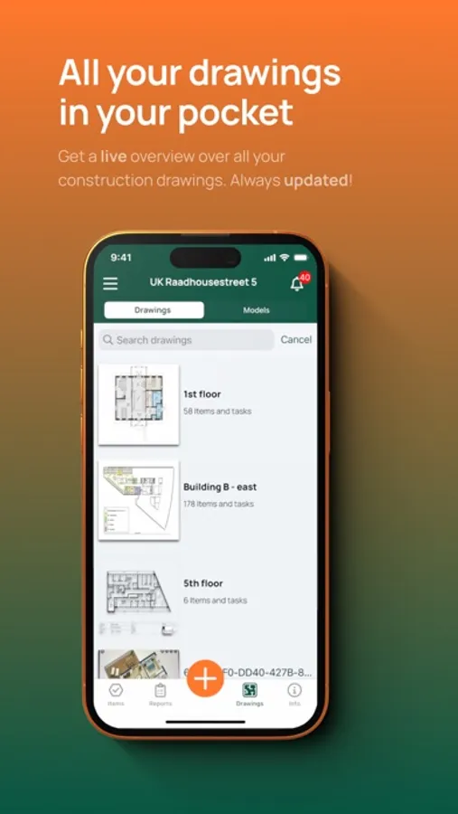 With NEXT FIELD, you have all the drawings right in your pocket – a live overview that is always up to date! No more worrying about carrying paper copies or searching for the latest version. We provide you with full access to the building drawings you need, whenever you need them.