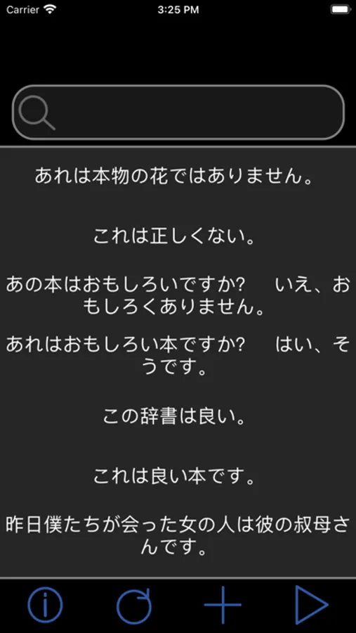 これは初級と中級の英会話に出てくる英文とその日本語訳を丸ごと暗記しながら、英語のリスニングとスピーキングの練習するアプリです。プラスボタンからURLボタンを押してサンプルをダンロードしてください。最初のページに戻ってリロードボタンを押してください。