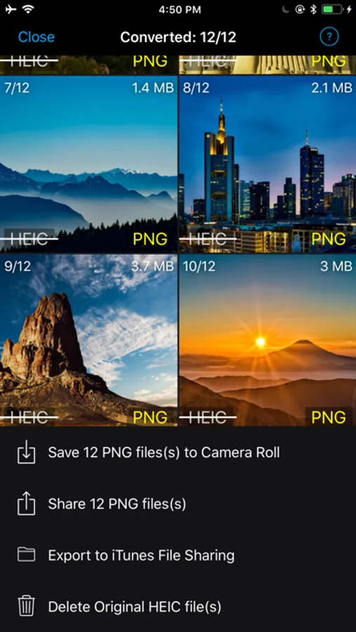 Unlike the simple system wide conversion of iOS 11, [Heic Converter] enables you to select the exact HEIC images you want and convert them to JPG or PNG of the exact size and quality.