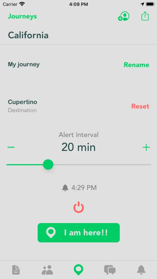 To join a journey you have been invited, tap the "People" button in the bottom bar, select the journey and then tap "Join". By doing that, you can update your location to the journey.
