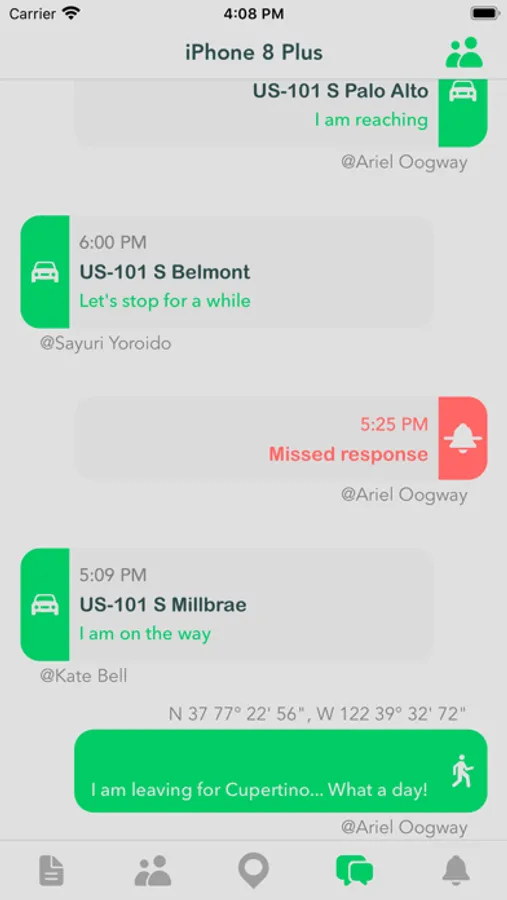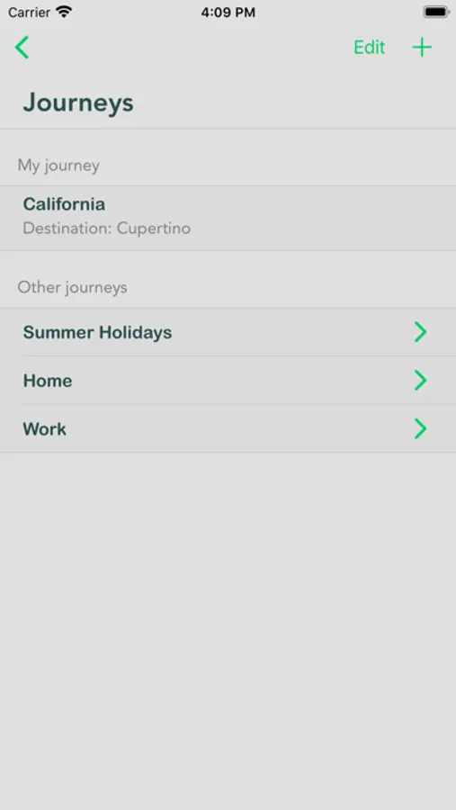 You can create and manage multiple journeys and update your location. When updating your location, you can add a message that will be recorded to the journey's chat. You can set a destination for each journey as well.