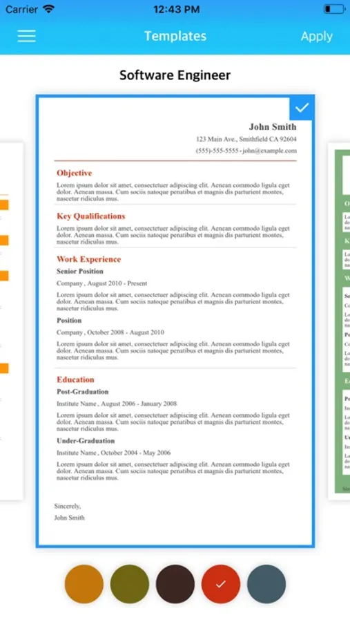 There are many resume templates available by default in the app itself to choose from for making the professional resume writing.