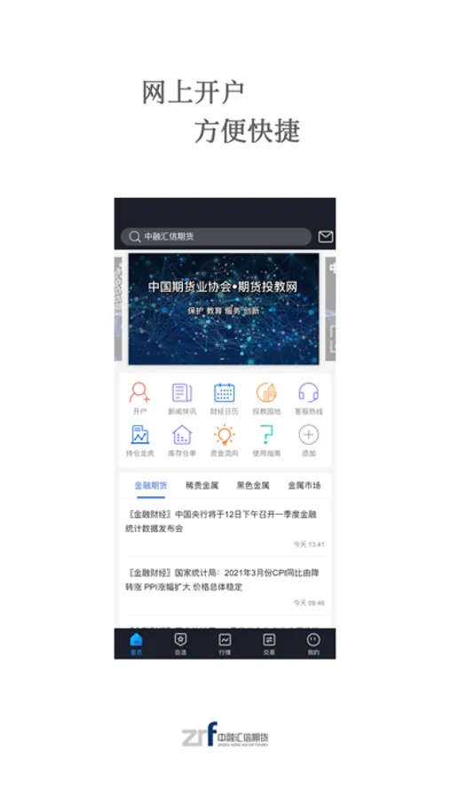中融汇信期货APP是一个集成金融资讯、行情、交易、开户、客服等功能为一体的期货网上交易手机软件。