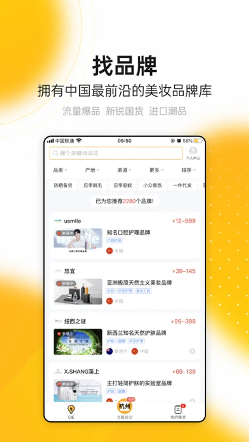 供需对接,领先的线上化妆品供需对接平台,化妆品行业的包打听,找品牌,找工厂,找加盟,深入化妆品产业链的各个环节,为您提供及时、高效、精准的匹配服务,更有专业的参谋团队,保姆式一键帮您对接,不再错过好商机。