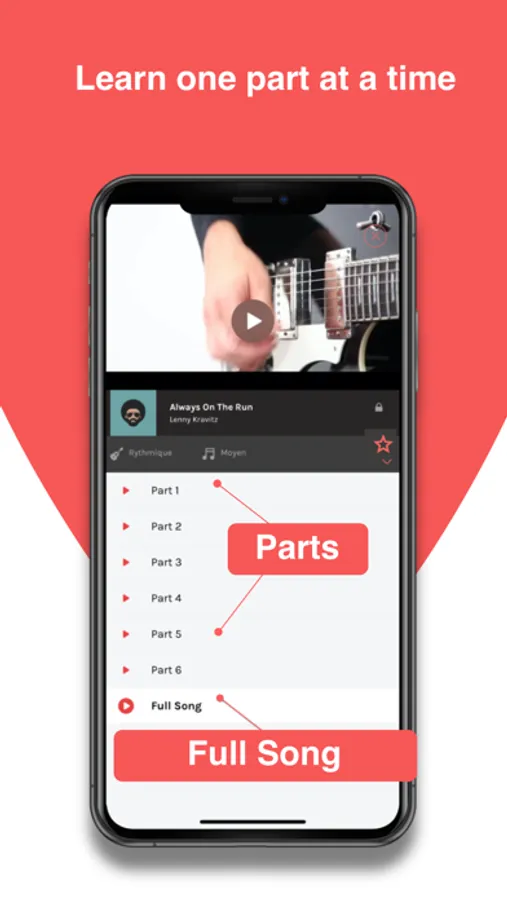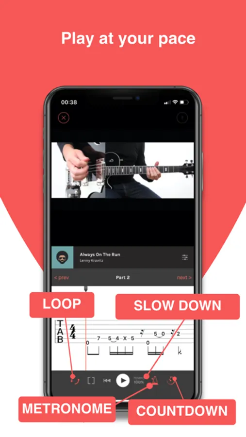 Learn easily with simplified scores available in standard notation, tablature, or neck view.