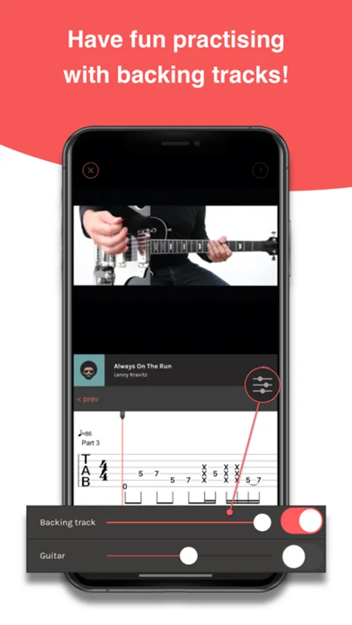 Play accompanied by quality backing tracks, with vocals and other instruments.