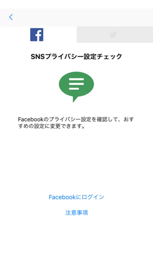 ・SNSプライバシー設定チェック … FacebookやTwitterのプライバシー設定をチェックして、変更が必要な設定を確認できます。