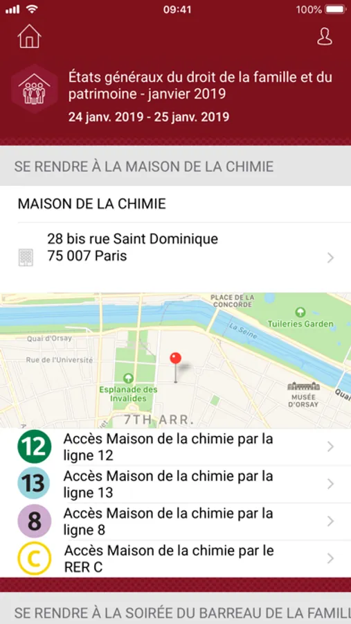 - CONSULTER LE PLAN : un plan des espaces de la Maison de la Chimie est mis à votre disposition afin de trouver plus facilement vos salles d’ateliers