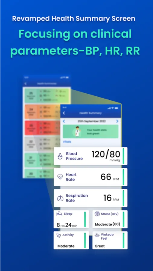 Our all-new Dozee Home app allows you to stay on top of your health while you sleep! It combines science with proprietary AI algorithms to measure, analyze and track your vitals and sleep. It measures blood pressure, heart rate, respiration rate, stress and sleep in a contactless manner.