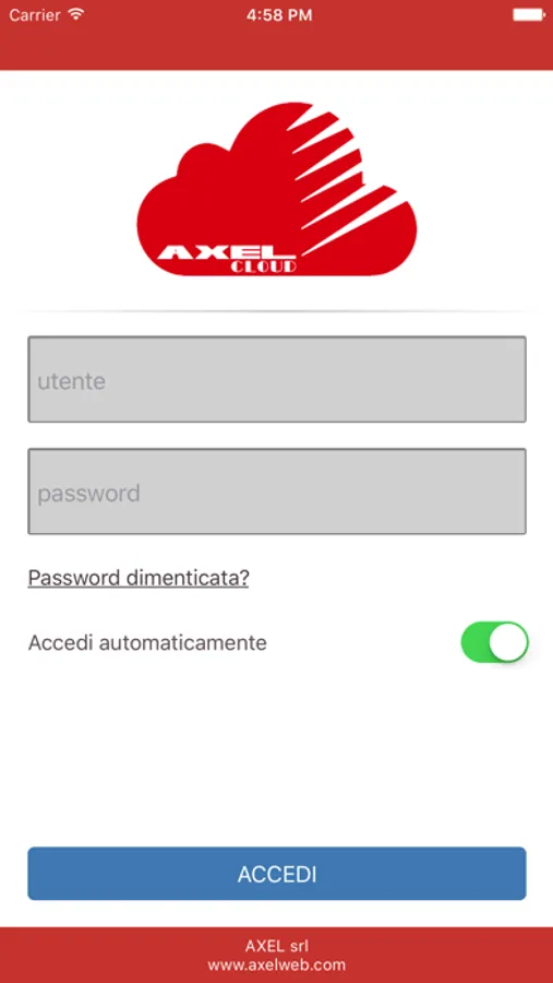 Dovrai aver registrato il tuo sistema-centrale Axel accedendo con username e password valida al profilo che avrai