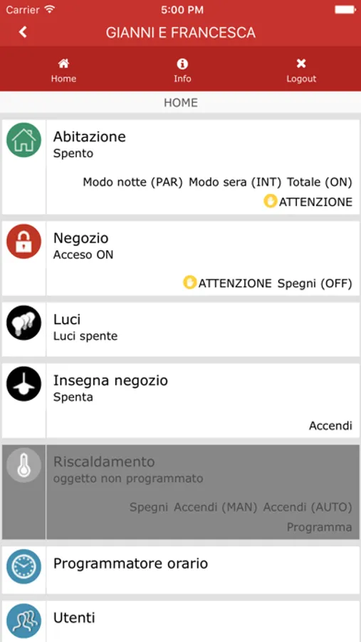 Puoi accendere e spegnere luci o gruppi di luci, attivare e disattivare carichi elettrici, aprire cancelli motorizzati,