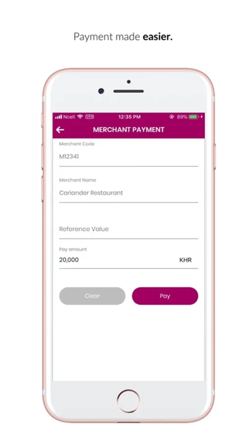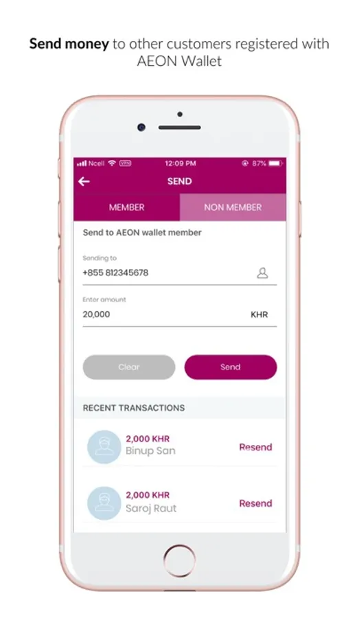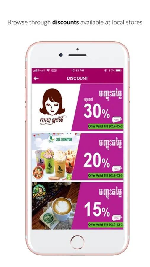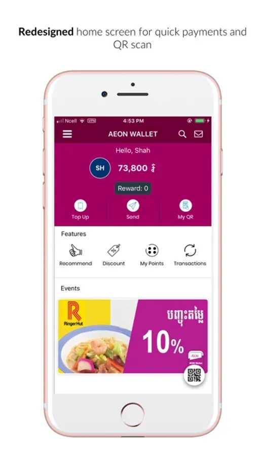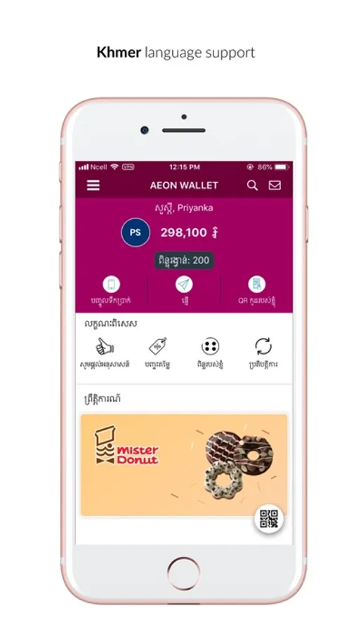 AEON Wallet allows customer to do payment by scanning QR code etc. This is purely transaction with Khmer Riel currency.