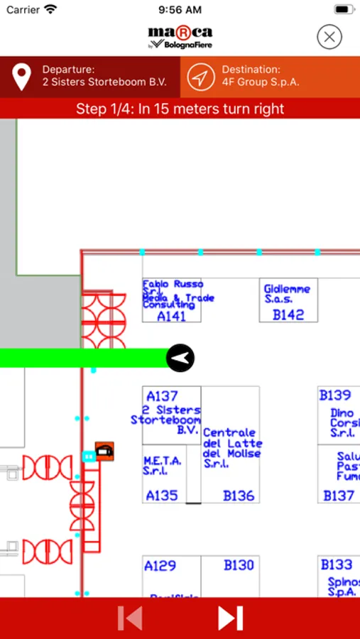 - A new tool for a guided navigation between single exhibitor stands and interest points