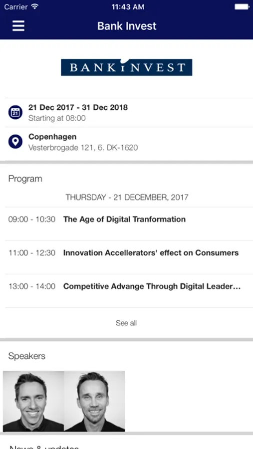 Brug app’en til at holde dig opdateret både før, under og efter BankInvests arrangementer.