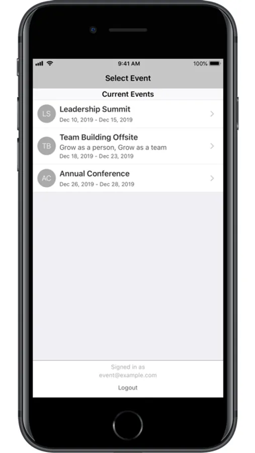 Users - see who’s at the event, and connect with them on the app