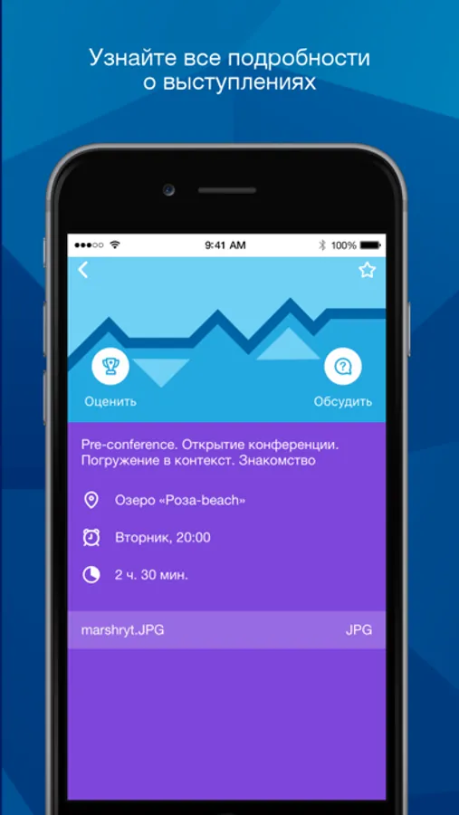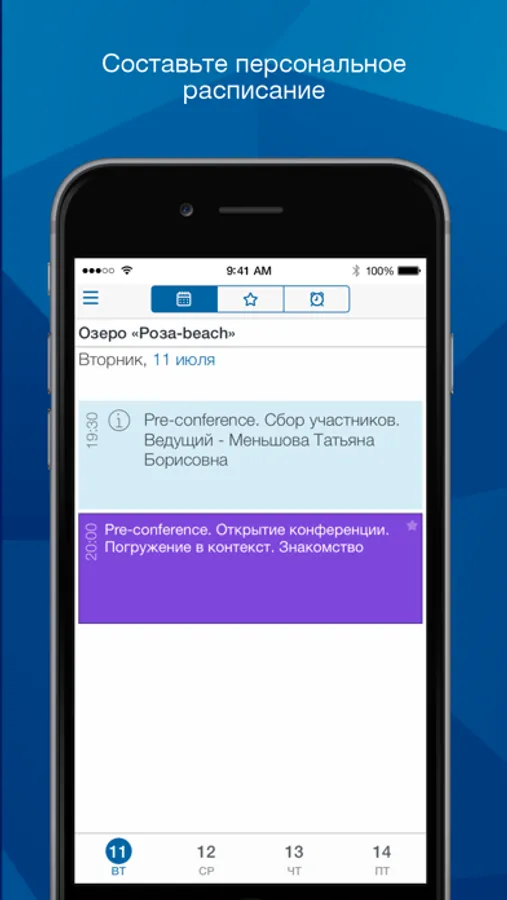 - составить собственную программу и получать оповещения о начале избранных докладов;