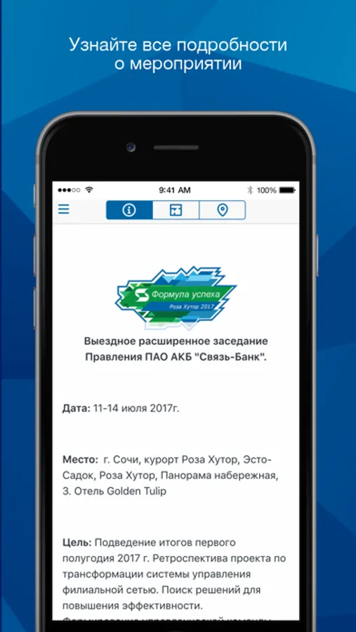 Официальное мобильное приложение для мероприятий проводимых Связь-Банком.