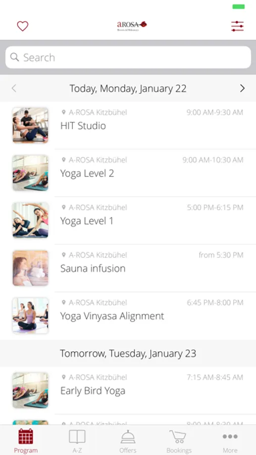 With your A-ROSA Resorts app you can conveniently access all current information about your A-ROSA resort at any time. Learn more about our comprehensive range of sports facilities and the numerous activities and events that take place in the most beautiful regions. We will keep you up to date, so that you won’t miss a yoga class or wine event and will stay informed about our wellness offerings at the A-ROSA resorts.
