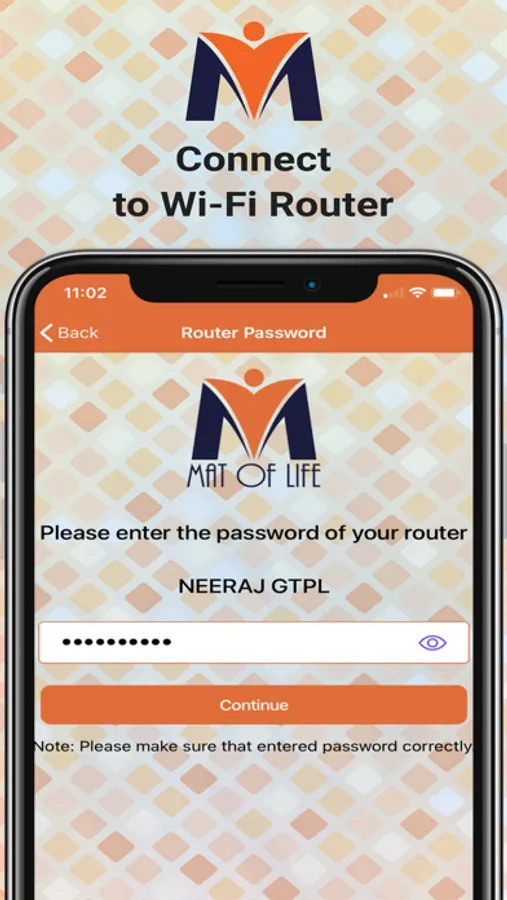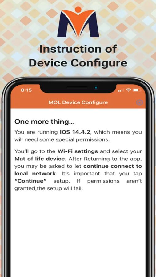 This is a simple app which can be used to configure user's WiFi SSID and password to Mat Of Life's IOT devices. This configuration will be useful for IOT device's to connect to user's home / office WiFi network. Using this app user can configure his / her MAT, Alarm or Light device with their home or office's router setting. This will also add particular device's serial no. to user's Mat Of Life account directly.