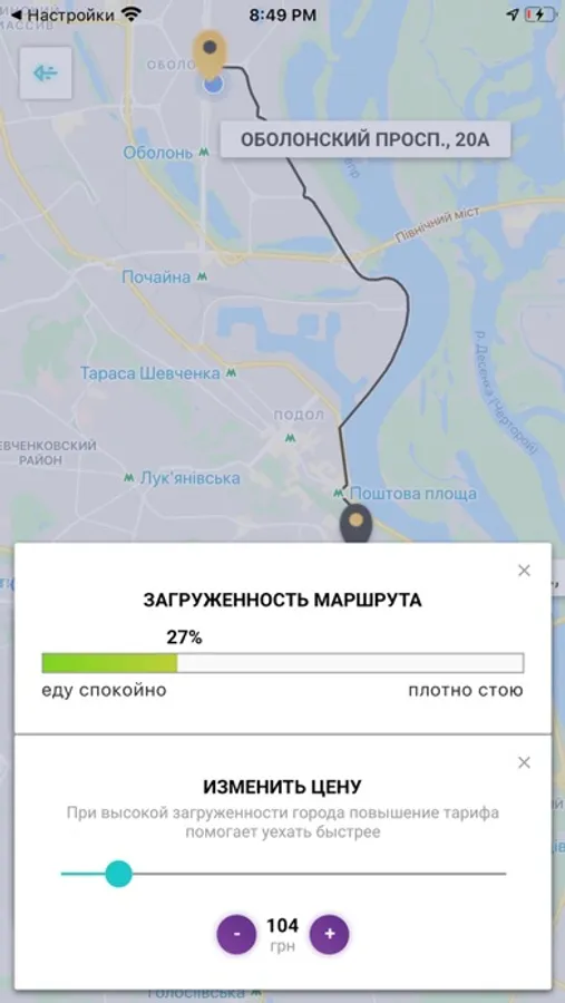 Price control - you can immediately see the estimated cost of the trip when choosing a destination