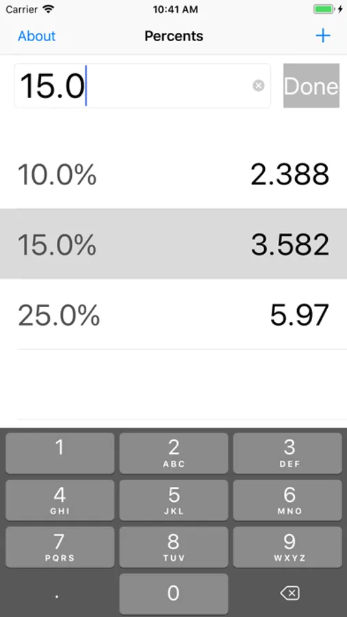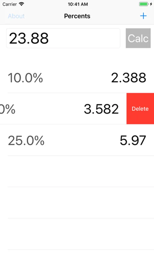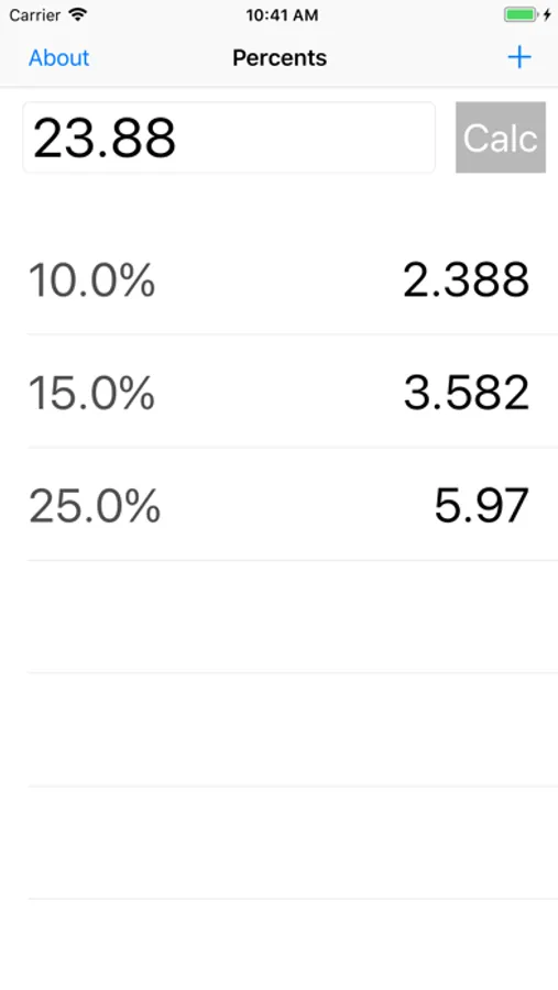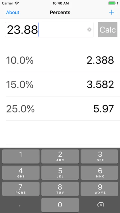 Tap the 'Calc' button to remove the keyboard and view all entries.