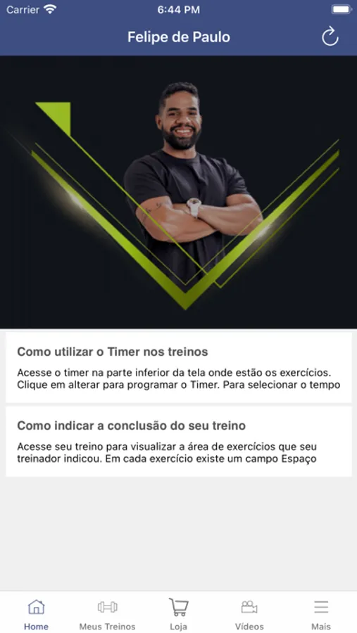 Através do aplicativo o personal Felipe de Paulo incentiva, motiva, e acompanha os alunos, para alcançarem seus desejos e objetivos.