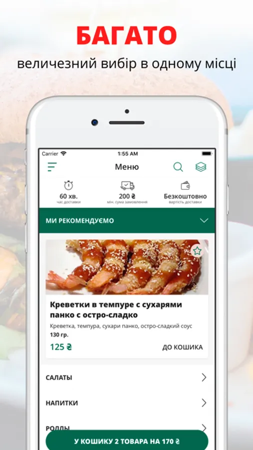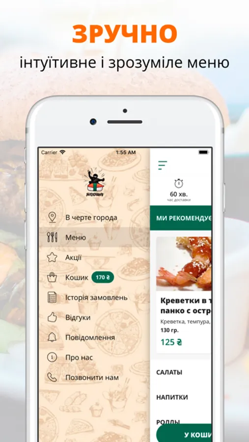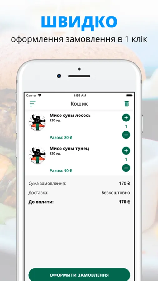 - Історія замовлень. Дивіться, що і коли ви замовляли і замовляйте знову!