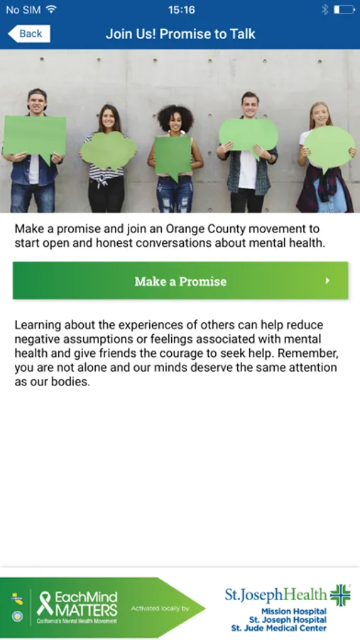 The Promise to Talk app provides a handy directory of local south Orange County mental health resource right at your fingertips. It also provides information about Mission Hospital’s local campaign, how to make a Promise to Talk pledge, how to get a “safe” conversation started, and much more.