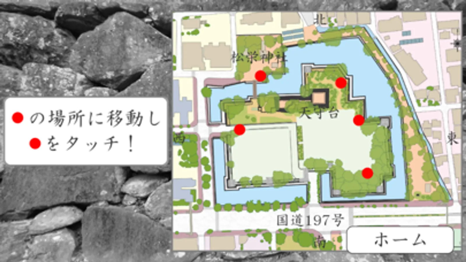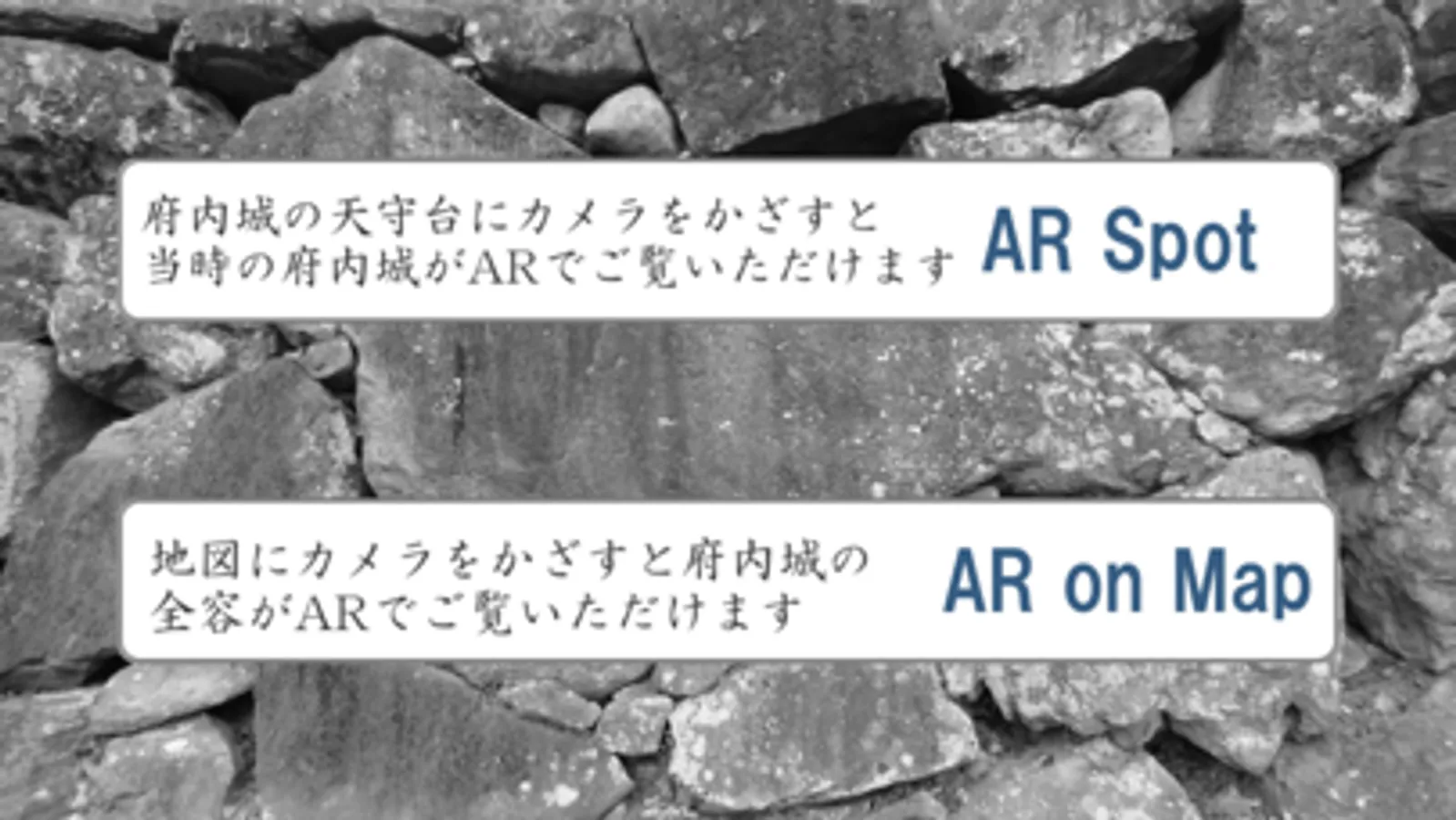 現地の5つのスポットでカメラを天守台にかざすと、当時の府内城の姿がARでご覧いただけます。