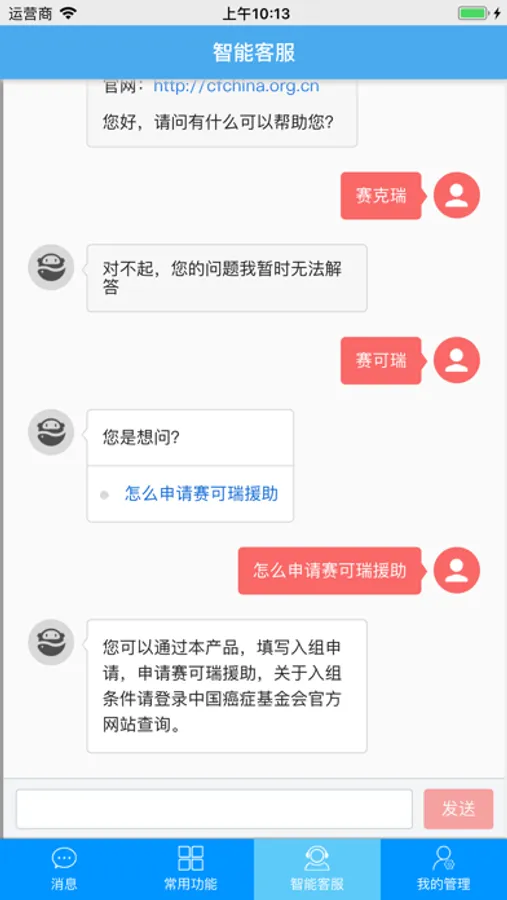 本应用是建立在中国癌症基金会赛可瑞患者援助项目流程基础上,支持患者、指定医生、指定药师、协管专员等特定人群在线实现简捷、高效的患者申请、审核进度查询,医生核实,协管专员协助等流程指导。