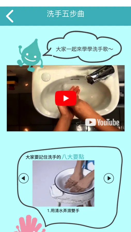 This app includes video tutorials and animations. Users can learn the knowledge of 5-steps for hand washing and the importance of proper hand washing . This app also provides a game about 5-steps for hand washing for users to play. We hope that by using this app, users can learn the importance of 5-steps for hand washing.