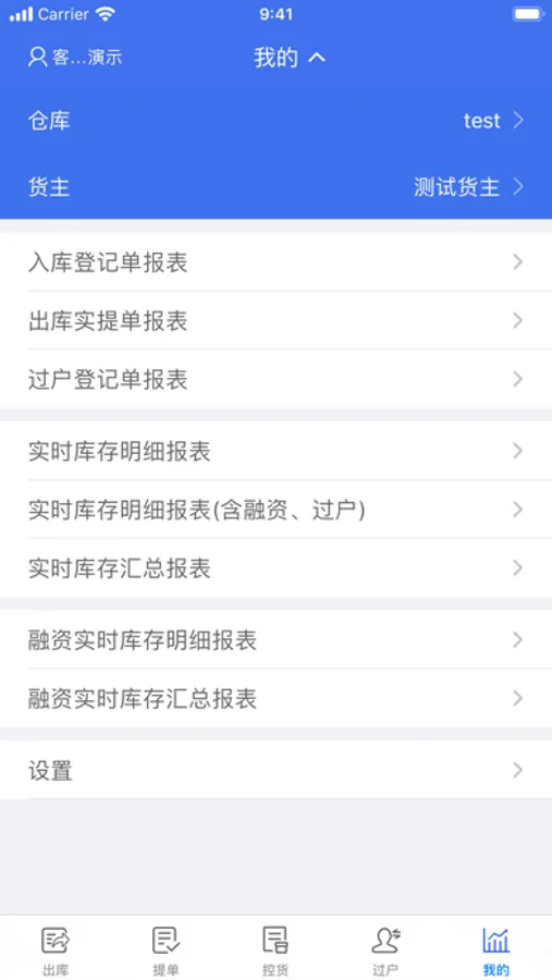 报表模块:查询自己在智慧仓储系统内库存与实提信息。