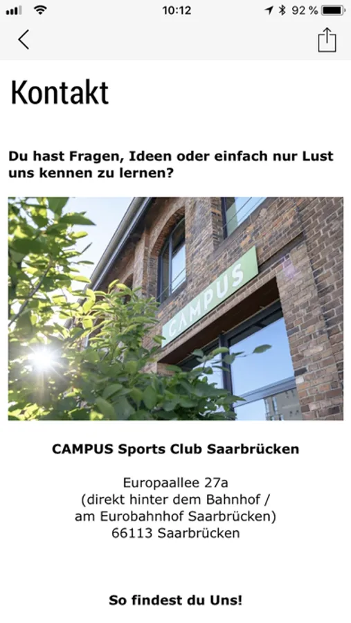 Informationen wie Club-Öffnungszeiten, Kontakt, Trainingstipps sind immer dabei und können sofort per Email an Freunde verschickt werden.