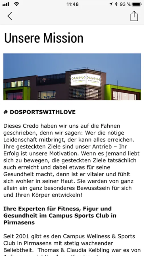 Alle News aus Deinen Campus Clubs in Pirmasens und Saarbrücken sind immer aktuell auf Deinem Smartphone und die wichtigsten werden per Benachrichtigung auf Dein Smartphone geschickt: So weißt Du sofort, wenn es neue Kurse gibt und verpasst keine Special-Events mehr.