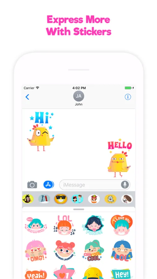 • PEEL & PLACE stickers on top of message bubbles or photos, just tap, hold and drop!