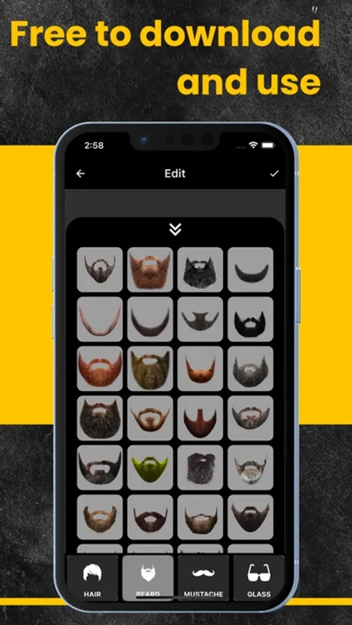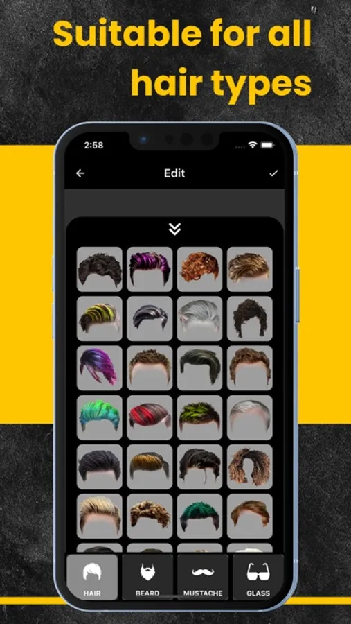 Use man photo editor or boy photo editor as man hair mustache editor to instantly add beard and hair styles . This photo editor is the best man hair styler , photo suit editor app. No need to download separate apps for man hair style photo editor , beard and hair photo editor or mustache and beard photo editor. All in one app.